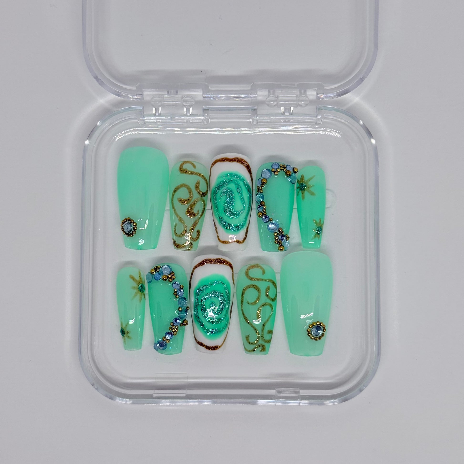 Tous nos press on nails sont réalisés artisanalement : ils peuvent varier légèrement, mais c’est ce qui fait leur charme !