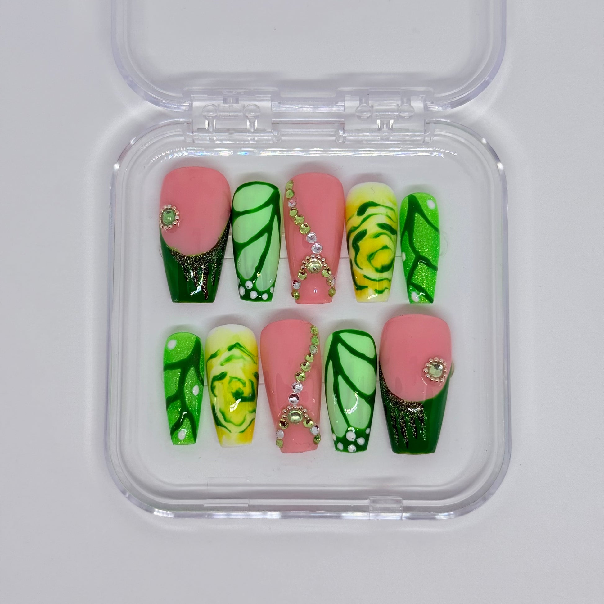 Tous nos press on nails sont réalisés artisanalement : ils peuvent varier légèrement, mais c’est ce qui fait leur charme !